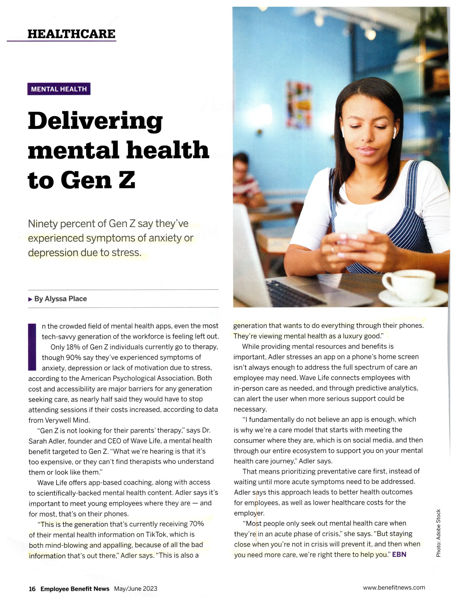 Below is an article from Employee Benefit News, May/June 2023 edition. When "Ninety percent of GenZ say they've experienced symptoms of anxiety or depression due to stress.", there WILL BE AN IMPACT upon the workers' compensation system.