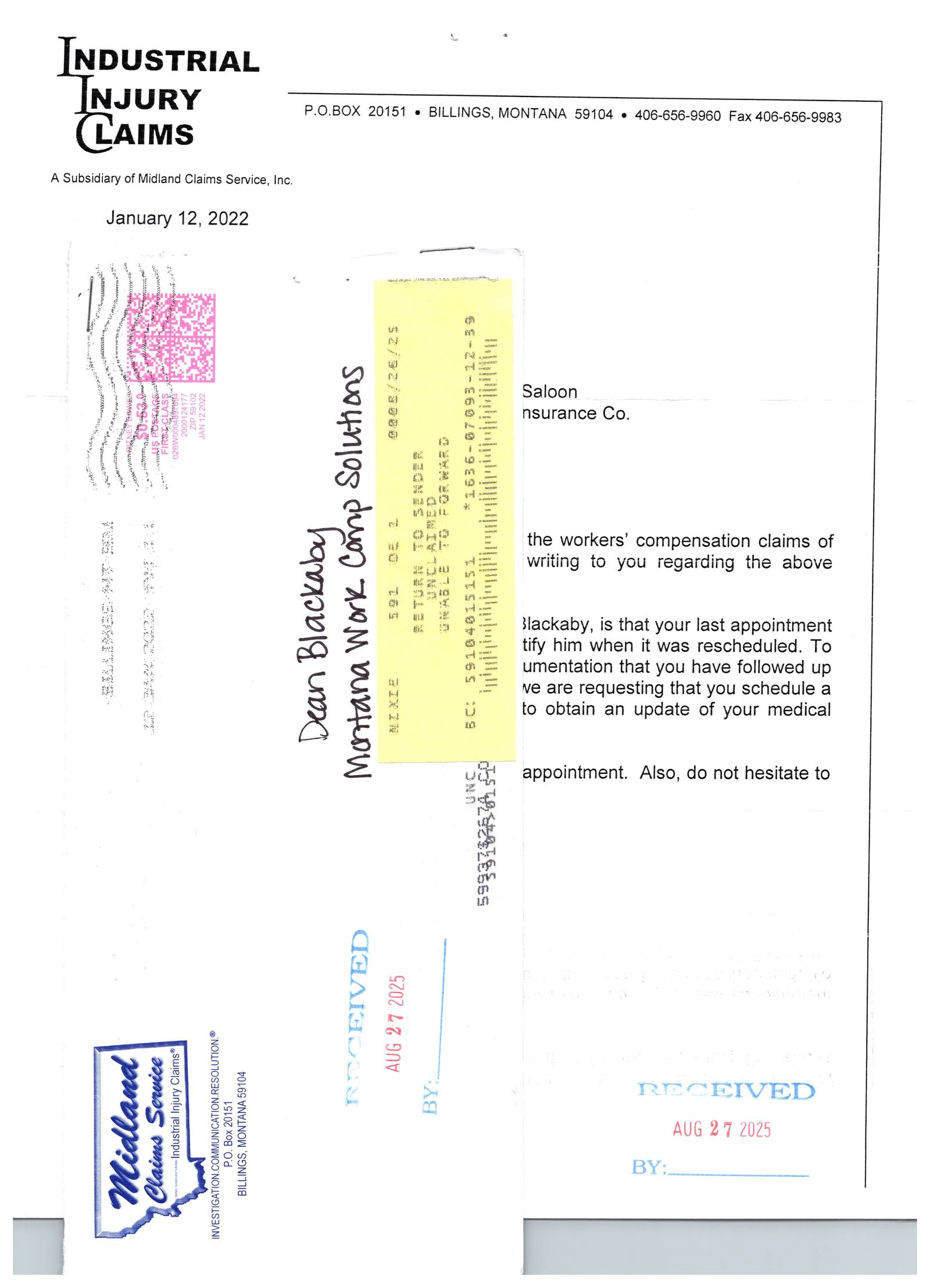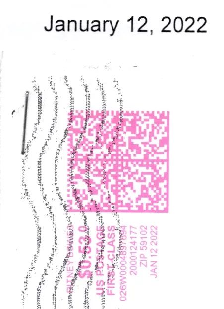Returned Mail Received 8/27/2025 Original Letter Sent 1/12/2022